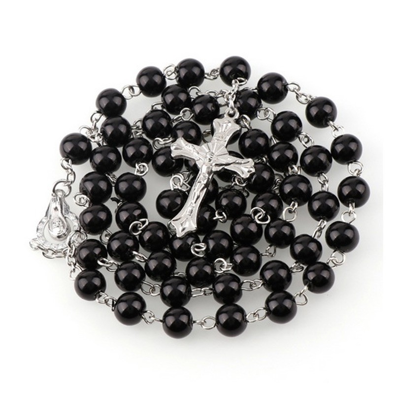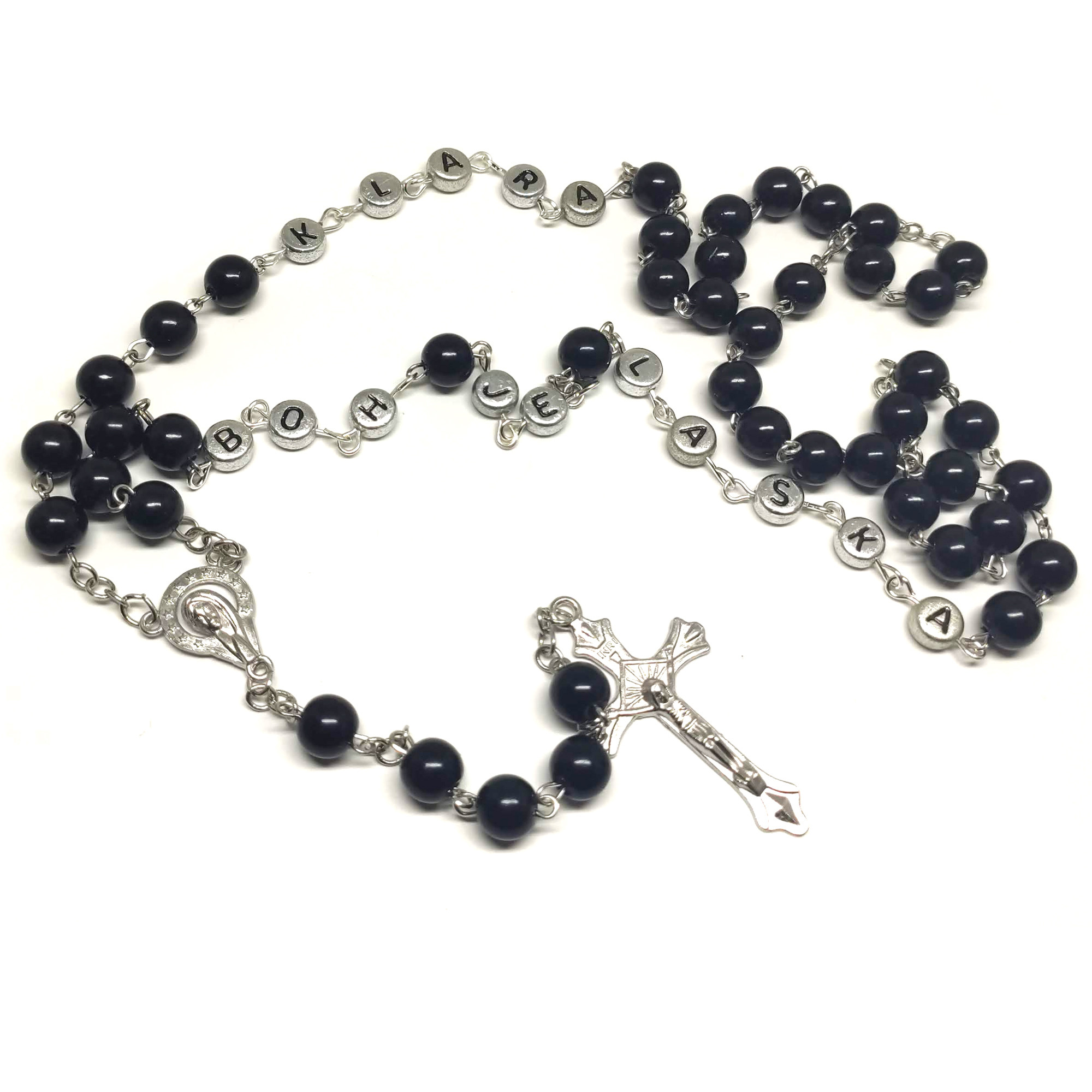 Ruženec s čiernymi perličkami, precízna práca, príjemný vzhľad