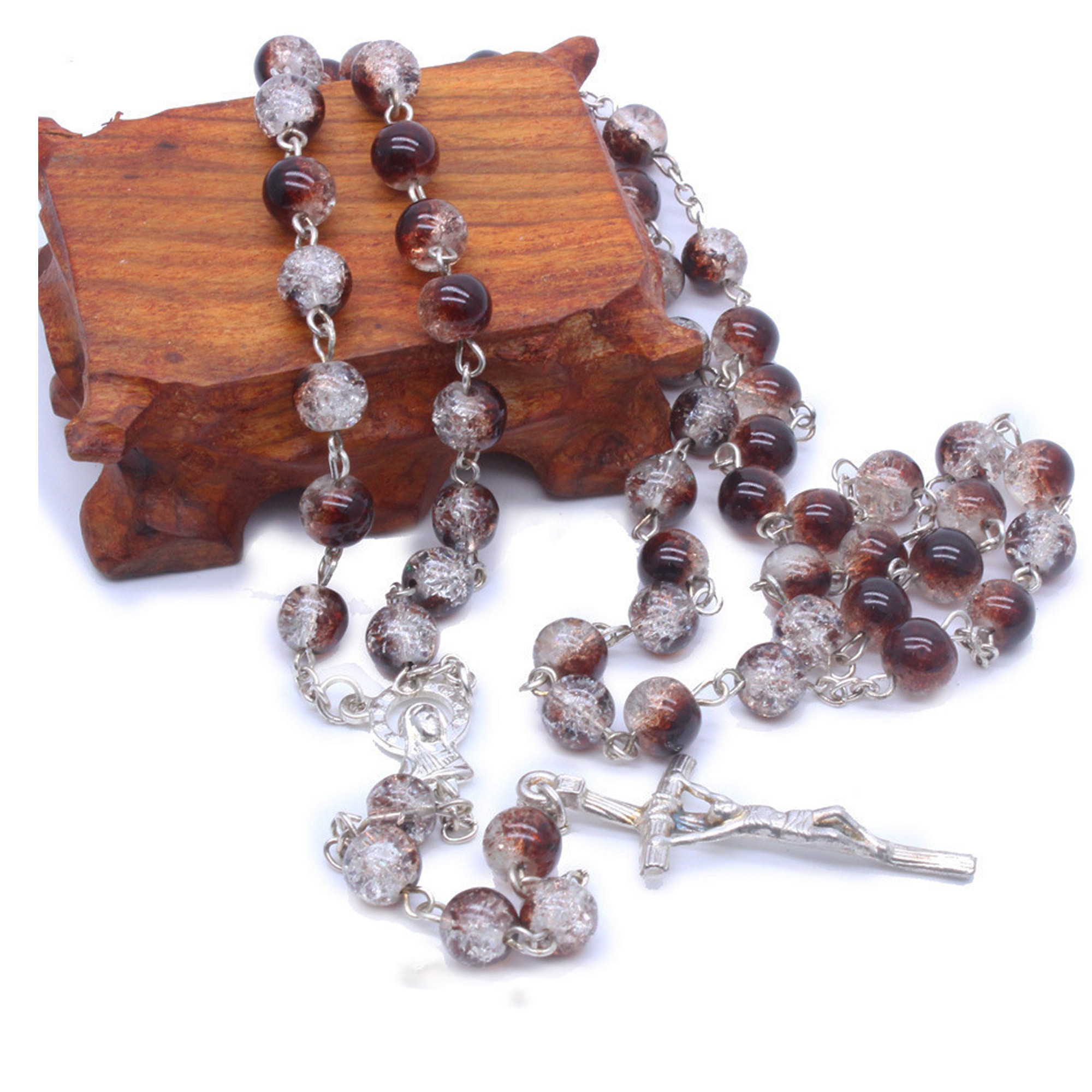Ruženec, pospájané priehľadné korálky, každú modlitbu oddeľuje...