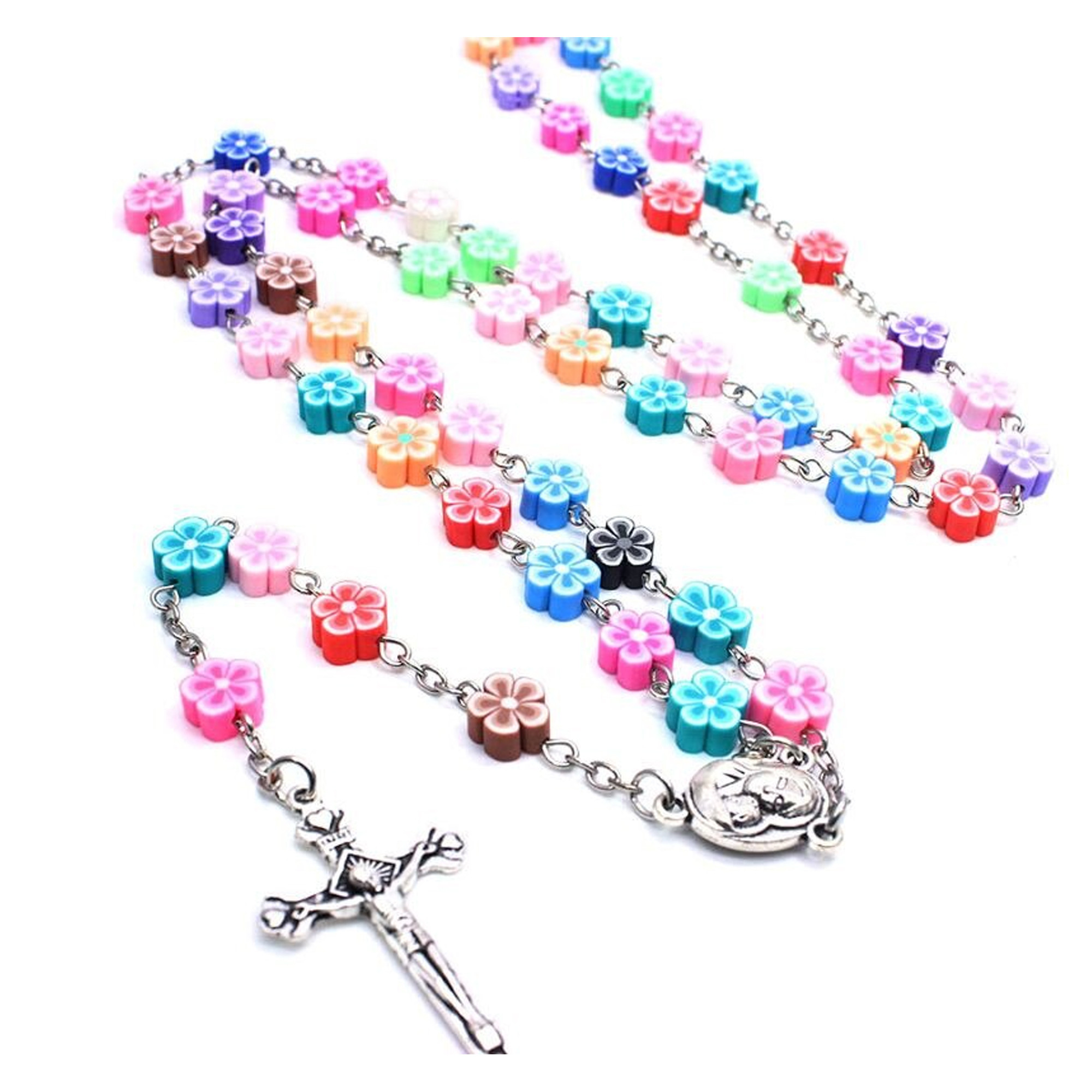 Náhrdelník ruženec, ktorý je pospájaný farebnými trblietkovými...
